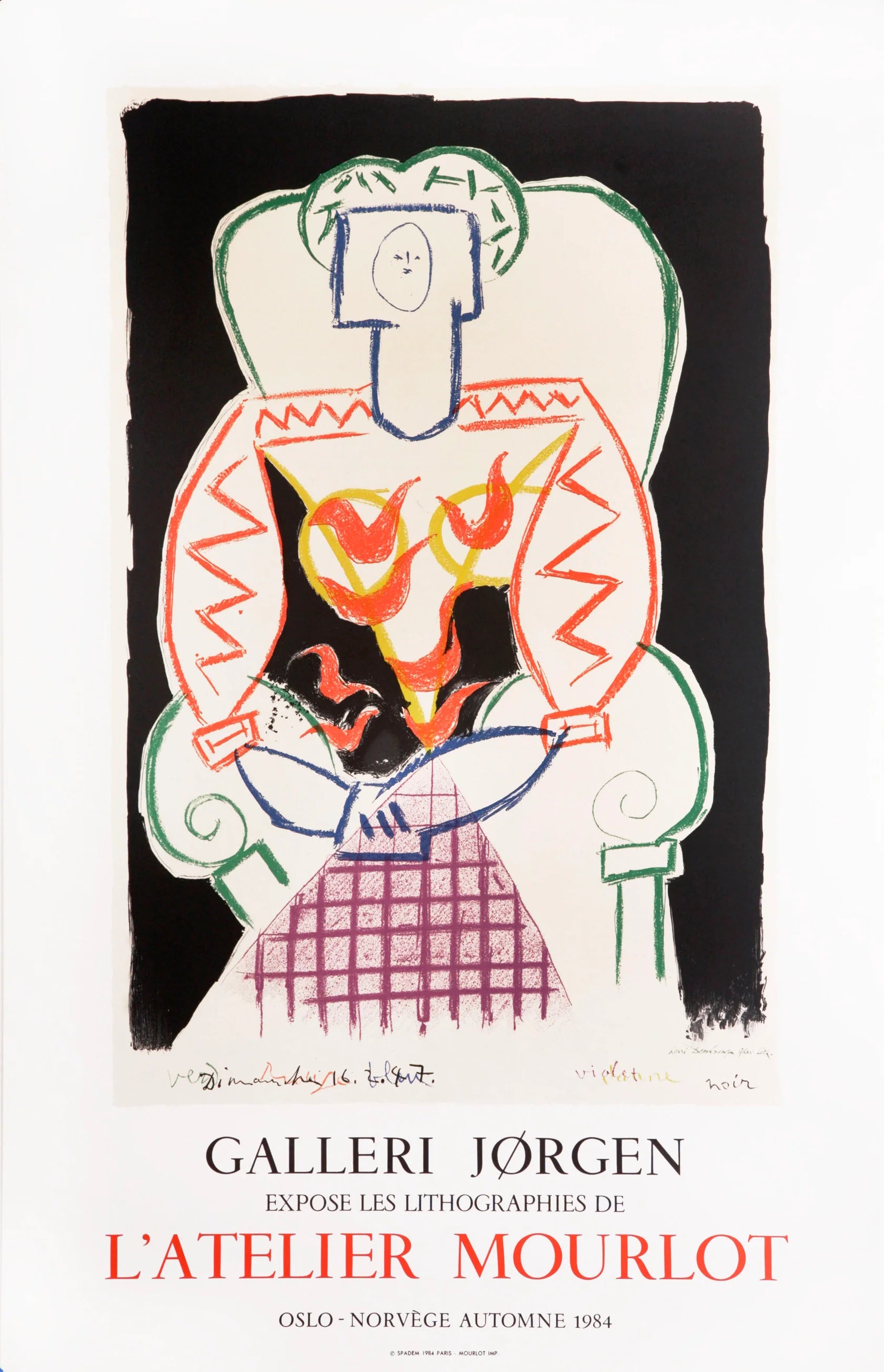 The 1947 lithograph "La Femme au Fauteuil" was chosen and approved by the Picasso Estate to reproduce for the exhibition of works from the Mourlot Studio at the Gallery Jørgen in Oslo, Norway.