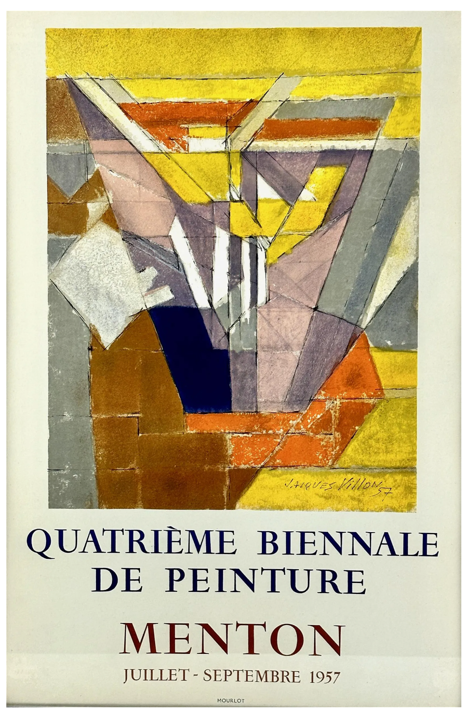 It is based on a painting by Jacques Villon, and was used to promote the Fourth Biennale of Painting in Menton, France, 1957.